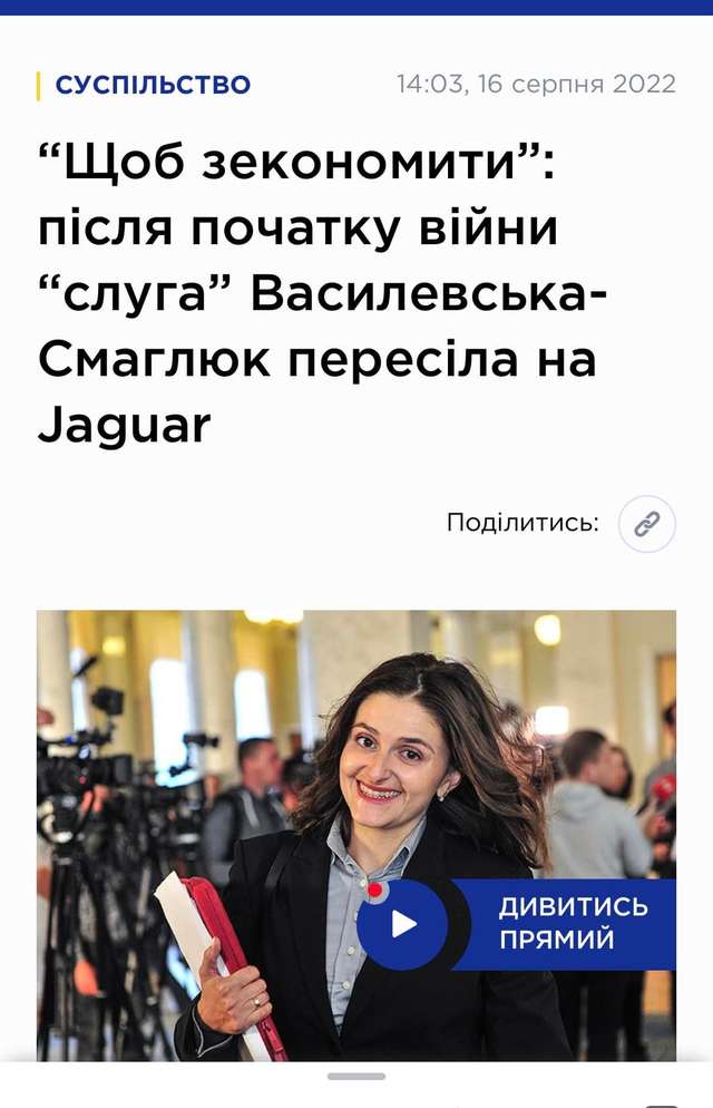 Ще більш лицемірно виглядає заклик Василевської-Смаглюк до Великобританії, якщо згадати те, що сама вона, під час війни, їздить на автівці Jaguar, модель 2018-го року, ціна якої на вторинному ринку становить від 50 тисяч доларів США.