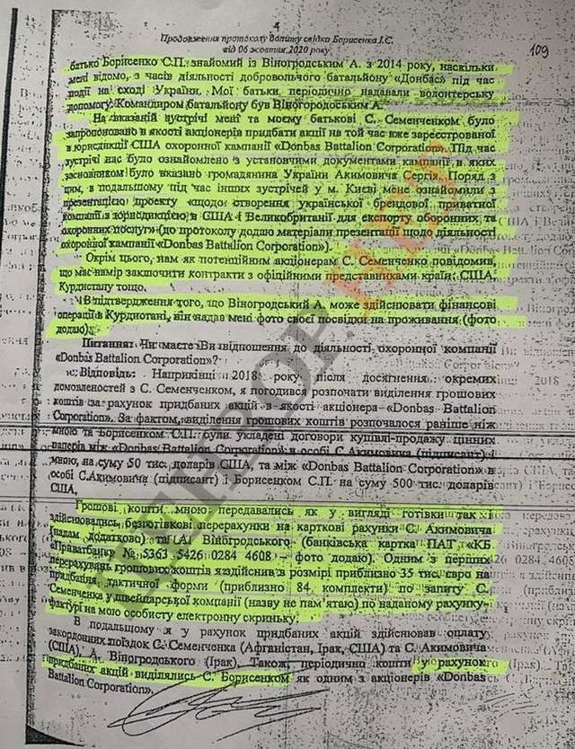 - Моєму батьку було запропоновано як акціонеру придбати акції охоронної компанії "Donbass Battalion Corporation"