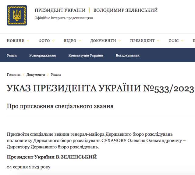 На честь Дня української Незалежності генеральське звання отримав голова ДБР Олексій Сухачов