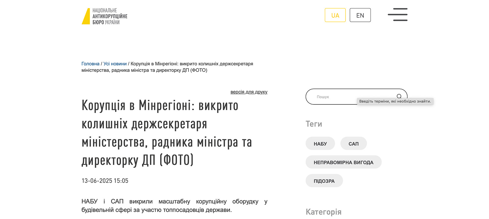 «Забудовник розробив схему незаконного одержання земельної ділянки у Києві під зведення житлового комплексу. Для цього звернувся до топпосадовців Мінрегіону, які створили умови для передачі землі підконтрольному держпідприємству. Воно ж у незаконний спосіб уклало з «потрібною» будівельною компанією інвестиційні договори.