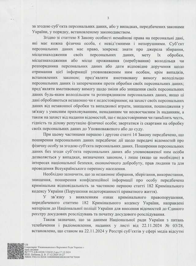 У зв'язку зі зверненням Уповноваженого Верховної Ради України із прав людини Зеленського Дмитра Лубінця.