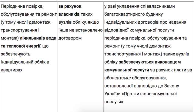 Але в новому Законі виключено вимогу щодо здійснення періодичної повірки, обслуговування та ремонту лічильників за рахунок суб'єктів господарювання, що надають послуги з тепло- і водопостачання.