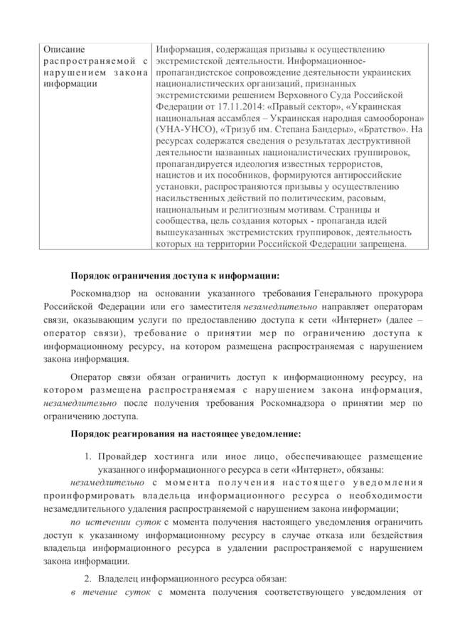 Так звана "федеральна служба з нагляду у сфері зв'язку, інформаційних технологій і масових комунікацій", вкотре, марно намагається переконати, що будь-які публічні згадки про діяльність правосекторівців, та Добровольчого Українського Корпусу, підпадають під статтю "екстремізм" чинного Карного кодексу сучасної орди.