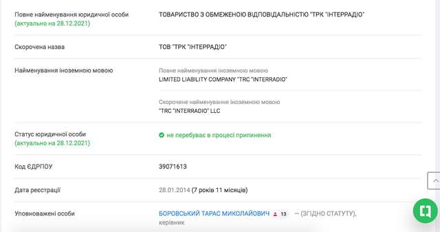 Згідно з даними аналітичної системи YouControl засновником юридичної особи ТОВ "ТРК ІНТЕРРАДІО" є Олексій Ковальов. Частка власності – 100%. Сума статутного капіталу зазначена 4 363 511 грн.