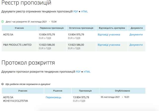 Про це повідомляється в системі ProZorro, передають Наші гроші.