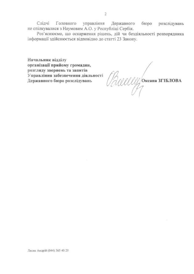 Там нам повідомили, що на сьогоднішній день справу проти Наумова про державну зраду так і не відкрили, до того ж Наумов вже взагалі не фігурує у справі Кулініча.