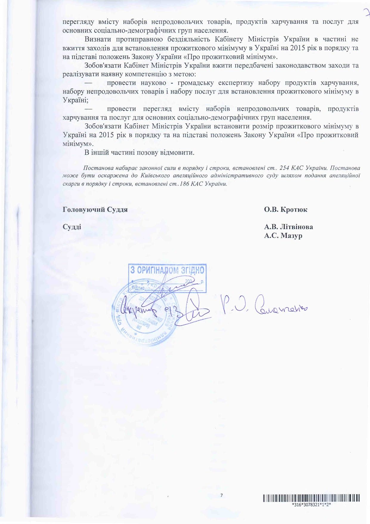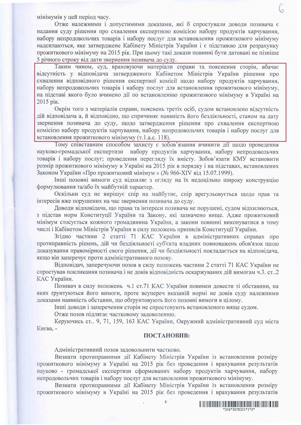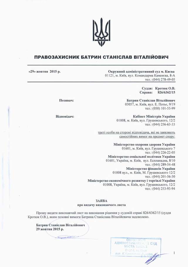Як повідомлялося, 17 вересня 2015 року Окружний адміністративний суд міста Києва ухвалив рішення у справі за позовом правозахисника, керівника проекту "Відкритий Суд" Станіслава Батрина, яким було визнано дії уряду України протиправними та зобов'язано провести науково - громадську експертизу й переглянути розмір прожиткового мінімуму в Україні.