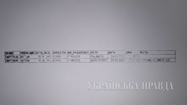 Що цікаво, виліт рейсу Кишинів-Рим лоукостера FlyOne затримався. І Дмитрук, пройшовши паспортний контроль о 17:30 (про що свідчить виписка з молдавської прикордонної бази, яка є у розпорядженні редакції), вилетів до римського аеропорту Фьюмічіно лише о 20-тій годині.