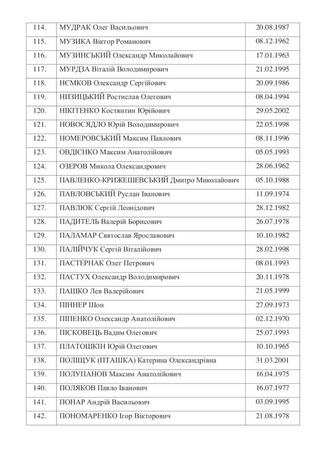 Серед звільнених — військовослужбовці НГУ, ВМС ЗС України, Сухопутних військ ЗСУ, ТрО ЗСУ, Держприкордонслужби, Нацполіції, СБУ, Держмитслужби та Державної спецслужби транспорту, а також двоє цивільних.