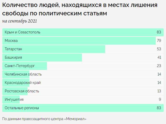 Упродовж 2014-2021 років тимчасово окупований росіянами український Крим став мати найбільшу кількість політв'язнів у цілій Європі, обігнавши за цим показником навіть кадировську Чечню.
