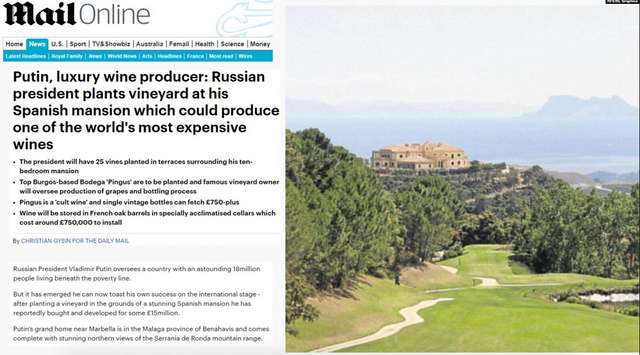 У 2015 році британське видання DailyMail опублікувало фото із сенсаційним заголовком: «Президент росії садить виноградник у своєму іспанському маєтку».